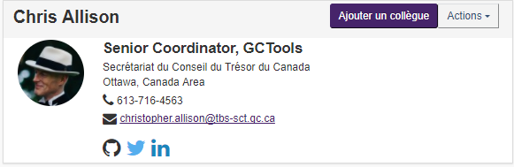 - Sur GCcollab, visitez le profil d’un membre que vous désirez ajouter comme collègue. Vous pouvez voir son icône de profil de différentes façon comme le Fil, les Activités et ses commentaires dans les groupes.